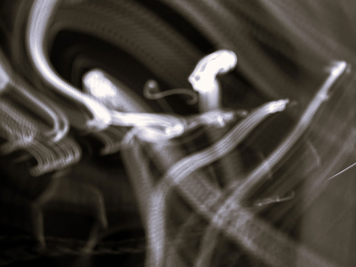 When harnessed, the positive side of the wiring offers exquisite creativity and visions of what could be. Random patterns align in a symphony of floating musical notes.